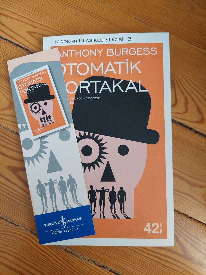 Türkiye İş Bankası Kültür Yayınları'ndan Modern Klasikler Dizisi 3 numara, Anthony Burgess'in Otomatik Portakal romanı ve ayraç içerir.