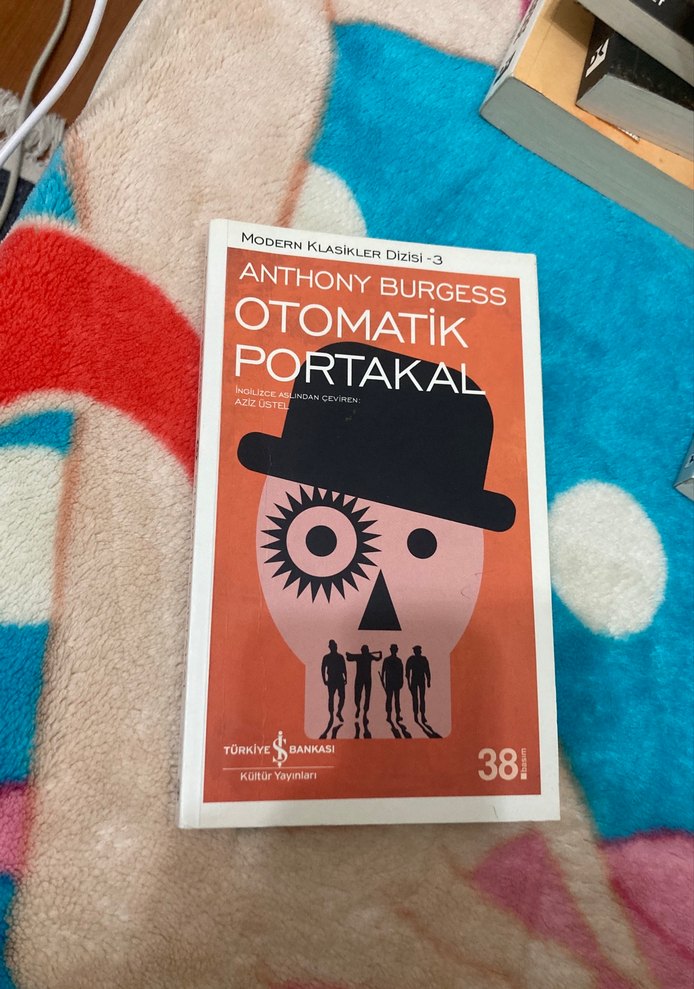 Anthony Burgess'in "Otomatik Portakal" adlı romanı, özgür irade ve toplum üzerine düşündüren bir hikaye sunuyor. Türkiye İş Bankası yayınevi.