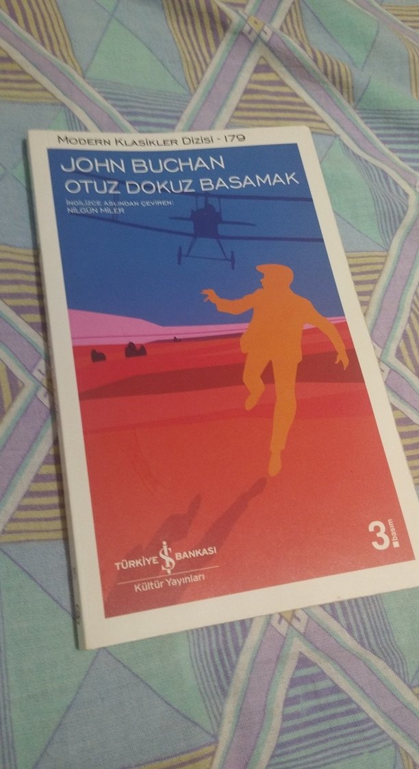 John Buchan'ın "Otuz Dokuz Basamak" adlı romanı, Türkiye İş Bankası Kültür Yayınları tarafından yayımlanmıştır. Kapakta koşan bir adam ve helikopter silueti yer alır.