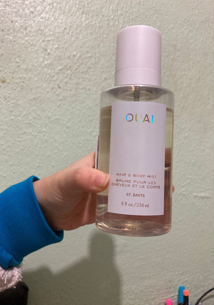 OUAI St. Barts saç ve vücut mist spreyi, 236 ml şişede saç ve cilt için hafif ve ferahlatıcı bir koku sunar.