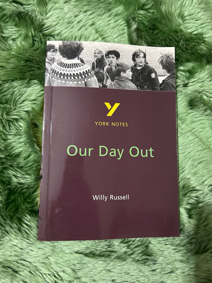 Willy Russell'in "Our Day Out" adlı oyununa ait York Notes baskısı, detaylı analiz ve notlar içerir.