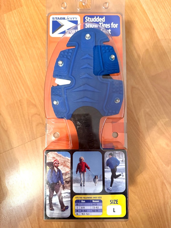 Koyu mavi renkli, perçinli kauçuk tabanlı erkek, karlı ve buzlu zeminler için kaydırmaz taban. Buz kramponu. Ambalajı açılmadı. Outdoor veya günlük yürüyüşlerde veya spor amaçlı kullanılabilir.