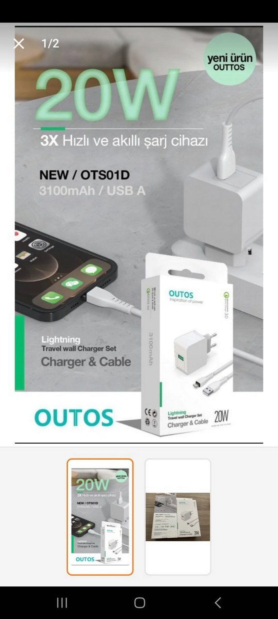 OUTOS 20W Lightning Şarj Cihazı ve Kablo Seti