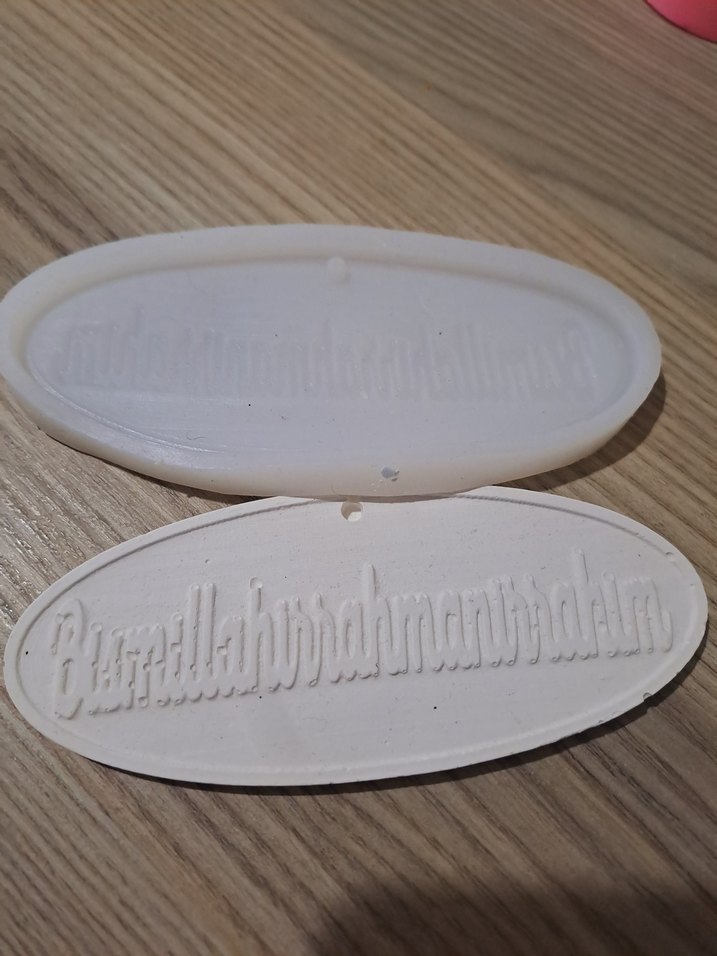 Oyma yazılı, oval şekilli taş tozu kalıbı
