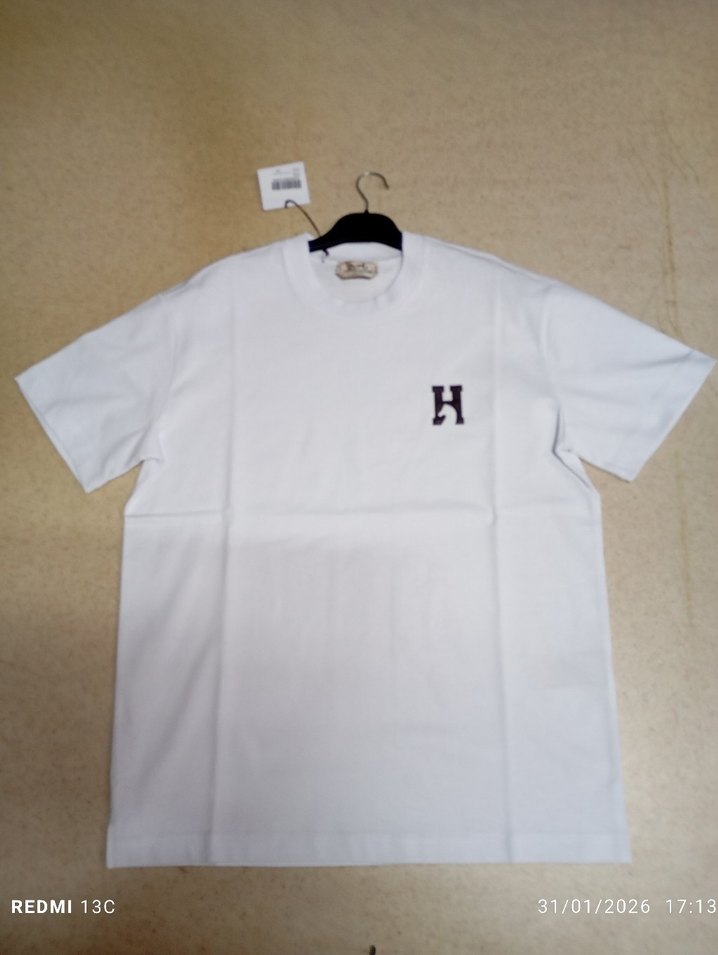 Pamuk kumaştan, yuvarlak yakalı ve bol kesim beyaz erkek kısa kollu tişört. Göğüste küçük baskılı 'H' detayı bulunur. Günlük kullanım için rahat ve sade.