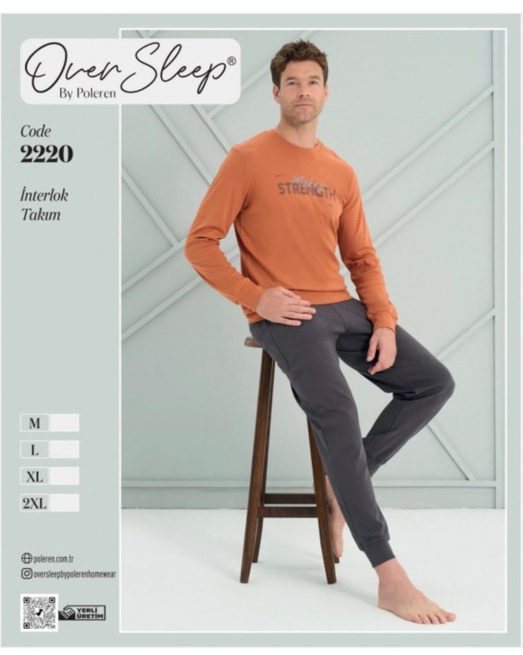 OVER SLEEP ERKEK POLEREN KİREMİT İNTERLOK PİJAMA TAKIM