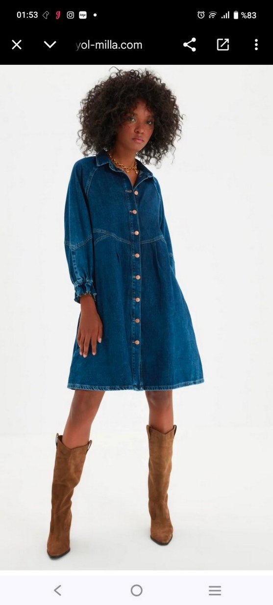 OVERSİZE DENİM ELBİSE .Her yaş grubuna hitap eden tasarımdadır Line silüeti sayesinde vücut hatlarınızı nazikçe sarar şık bir görünüm sağlar .38 beden yazıyor ama 40/42 beden de giyebilir ölçüleri dikkate alınız.Göğüs 51 cm Boy 95 cm