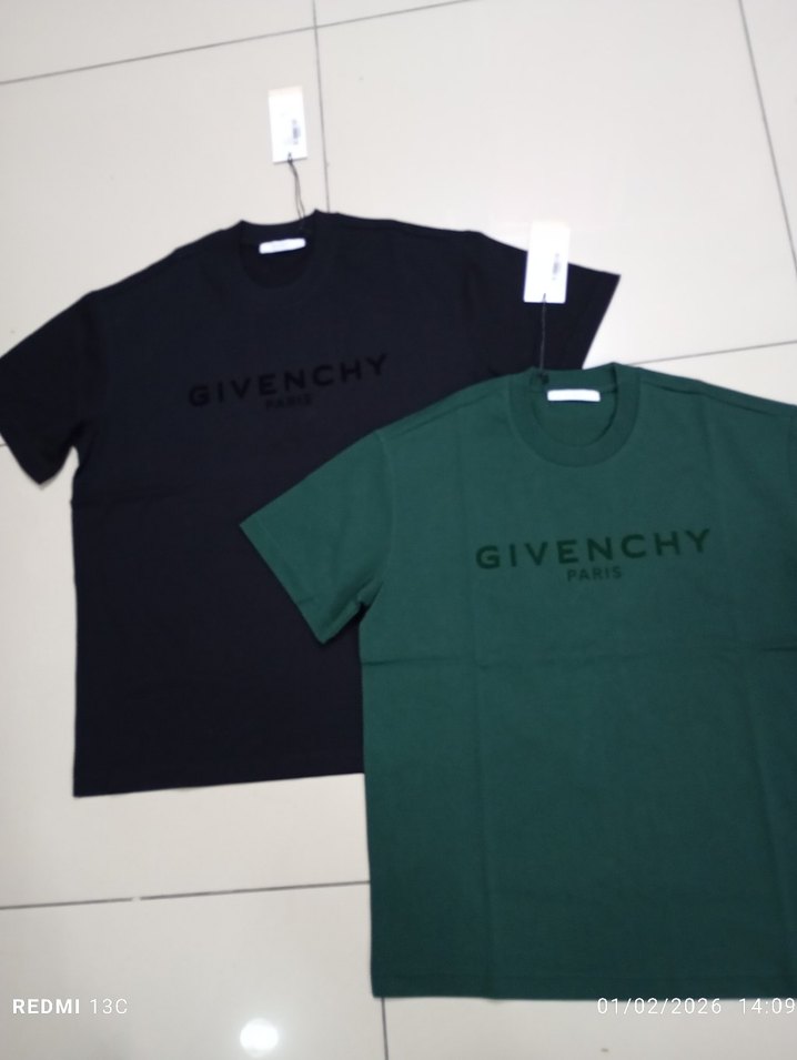 Givenchy marka erkek tişört, kısa kollu, yuvarlak yaka ve bol kesimdir. Sentetik kumaştan yapılmış koyu yeşil renkte, önünde baskılı logo bulunur. Günlük rahat stil için uygundur.