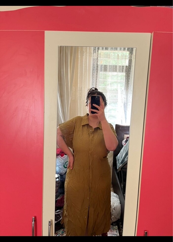 Tiril tiril yazlık gömlek elbise denemek için giyildi etiketi vs hala duruyor