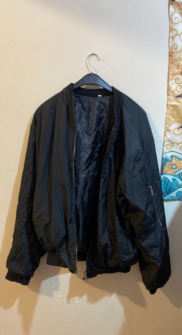 Bu siyah kadın ceketi, fermuarlı ön, uzun kollu ve notalı yaka ile bol kesime sahiptir. Sentetik kumaştan yapılmış, midi boyda ve günlük kullanım için uygundur.