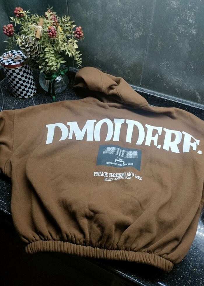 Oversize Kapüşonlu Sweatshirt Kahverengi