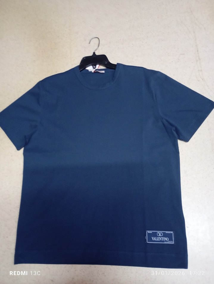 Lacivert renkli, kısa kollu, bisiklet yaka erkek tişörtü. Denim kumaştan üretilmiş, regular fit ve Valentino baskılı etiket detaylı.