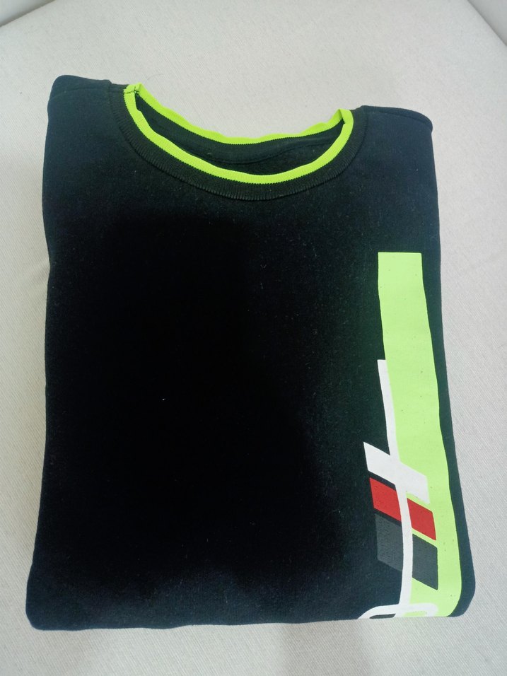 Oversize siyah baskılı sweatshirt, yuvarlak yaka ve uzun kolludur. Rahat kesimi, yumuşak kumaşı günlük kullanım için uygundur. hiç kullanılmamıştır büyük geldiği için satıştadır ölçülerini görsellere ekledim. #oversizesweatshirt #oversize #sweatshirt