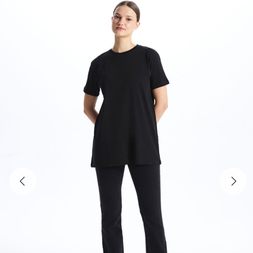 Kadınlar için siyah, uzun, kısa kollu, bisiklet yaka ve normal kesime sahip pamuk tişört. Günlük kullanıma uygun, rahat ve şık görünümlü. tunik veya elbise şeklinde kullanılabilir.