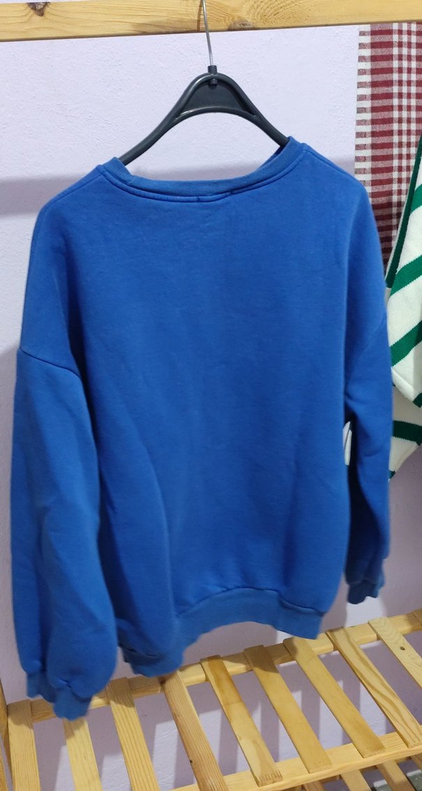 Mavi renkte, bisiklet yakalı ve uzun kollu olan oversize sweatshirt fiyati makul tutuyorum alıcısına hayırlı olsun