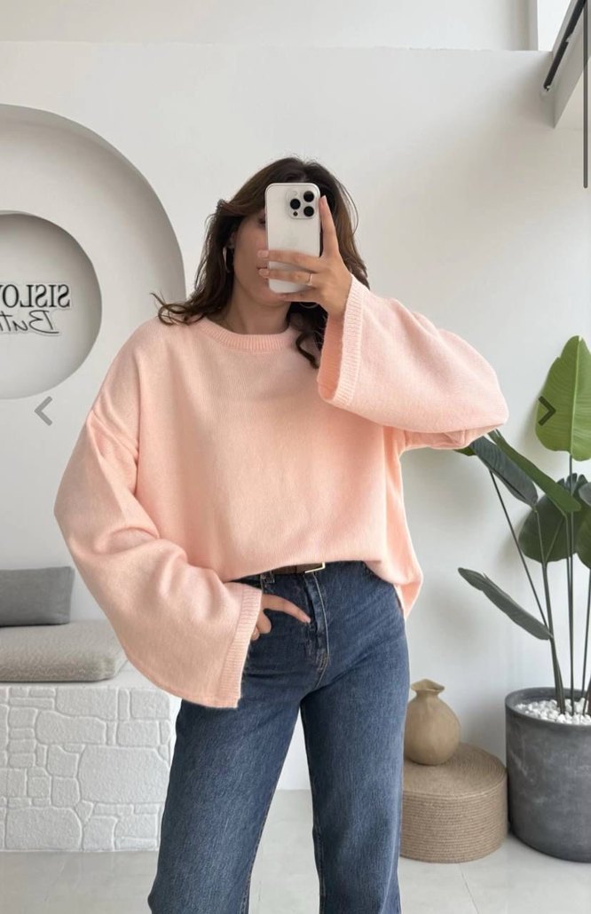 Pudra pembe Oversıze trıko kazak