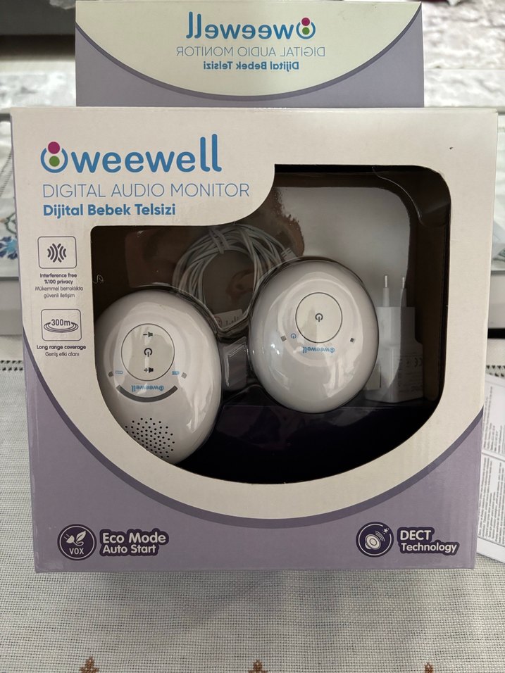 Oweewell Dijital Bebek Telsizi, DECT teknolojisi ile net ses sunar. 300 metreden fazla menzil, eco mod ve otomatik başlatma özelliklerine sahiptir.