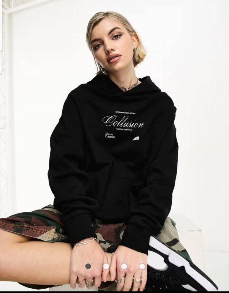 MARKA :Collusion. SIFIR, ORJİNAL ÜRÜNDÜR. 3 İPLİK, ŞARDONLU, BASKILI, OWERSİZE, POLAR.