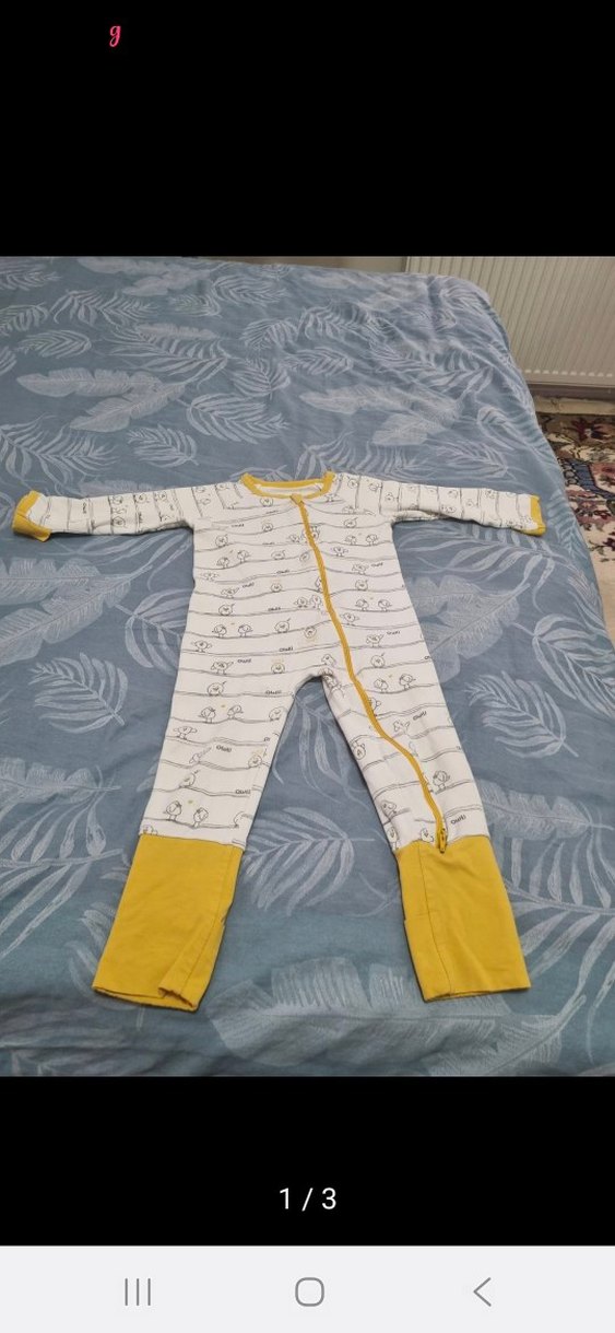 Uzun kollu ve bisiklet yaka olan bu bebek tulumu, fermuarlı ön kısmıyla rahat kullanım sağlar. Sarı detaylı, yumuşak ve sıcak kumaştan üretilmiştir.