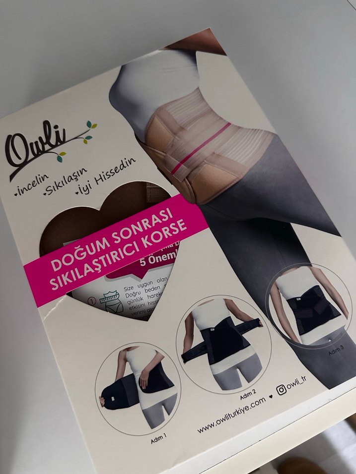 Kısa süre kullandım. ihtiyacım kalmadı tertemiz kutusunda duruyor Owli, Doğum sonrası kullanım için tasarlanmış, baskılı desenli, kısa ve vücuda oturan bej renkli sıkılaştırıcı korse. Destek ve şekillendirme sağlar.