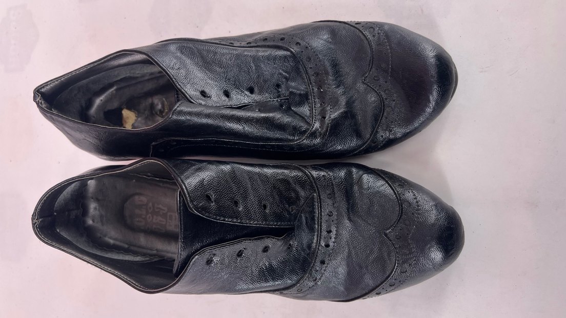 siyah bağcıklı deri 5cm topuk. İçine taban almak gerek eskimiş.