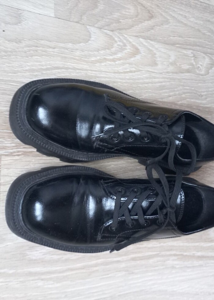 Siyah rugan bağcıklı, çok az kullanılmış sağlam bir ayakkabı. 39 numara aldım fakat büyük geldi. 40 numara giyenlere olur.