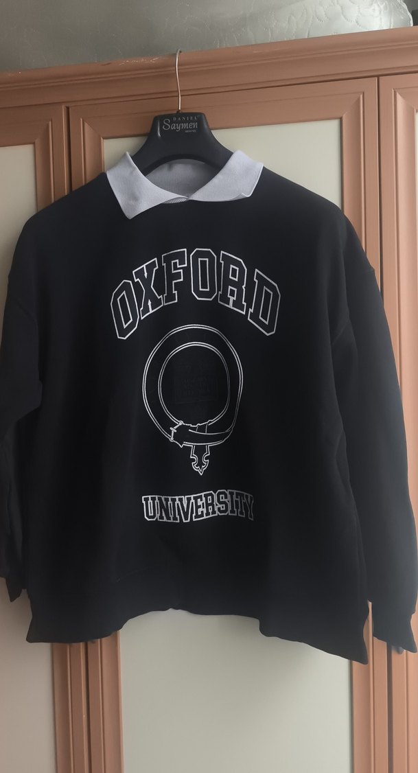 Oxford Üniversitesi baskılı, siyah, uzun kollu ve rahat kesim kadın sweatshirt. Yumuşak ve sıcak kumaştan üretilmiştir.