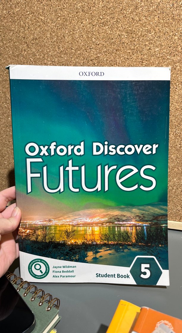 Oxford Discover Futures 5 Öğrenci Kitabı, Jayne Wildman, Fiona Beddall ve Alex Paramour tarafından hazırlanmıştır. Isterseniz workbookda elimde var, yazmaniz yeterli. Kitabin 1-2 sayfasi haric tamamen bostur, son sayfasinda da sayfanin alti kismi biraz yirtik gorselde mevcut