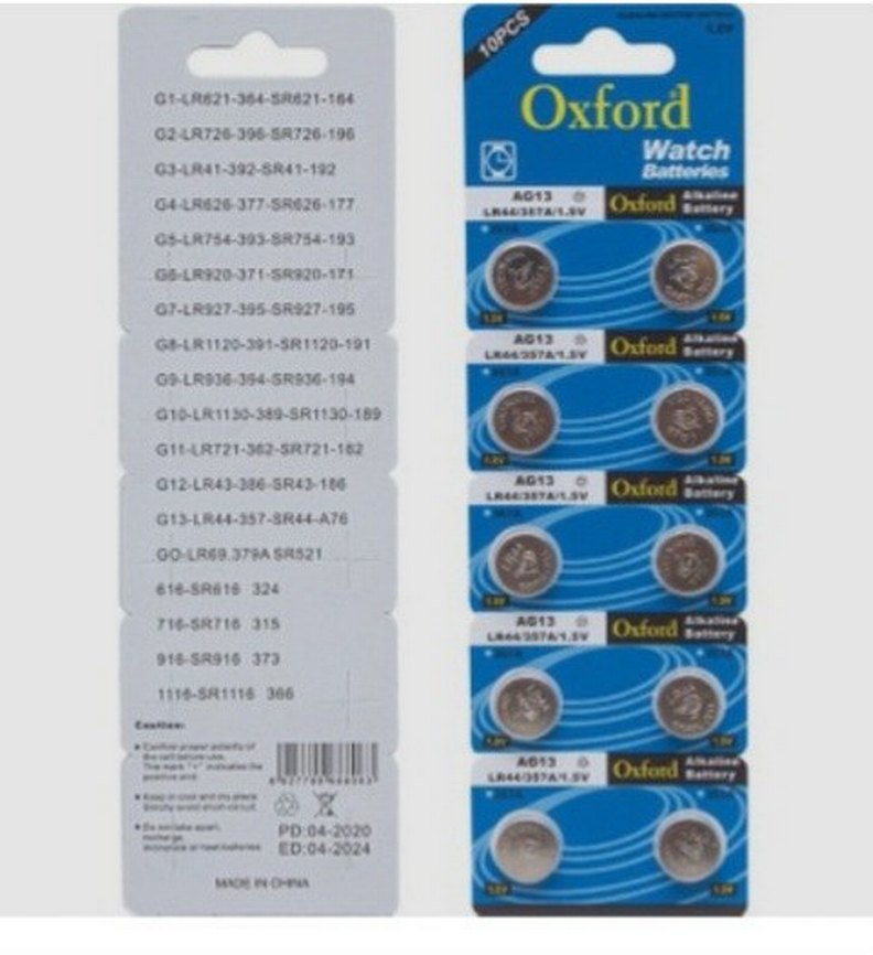 Oxford marka, farklı boyutlarda 10 adet alkalin saat pili seti. Çeşitli saat modelleri için uygundur ve mavi karton ambalajda sunulur. ⏱️