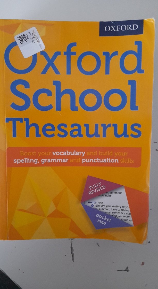 Oxford School Thesaurus, kelime dağarcığı, yazım, dilbilgisi ve noktalama becerilerini geliştirmeye yardımcı olan cep boy bir sözlüktür.