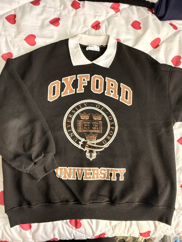 Oxford Üniversitesi baskılı, kahverengi, yuvarlak yaka, uzun kollu, bol kesim sweatshirt. Yumuşak ve sıcak kumaştan, günlük rahatlık ve sokak stili sunar. ✨