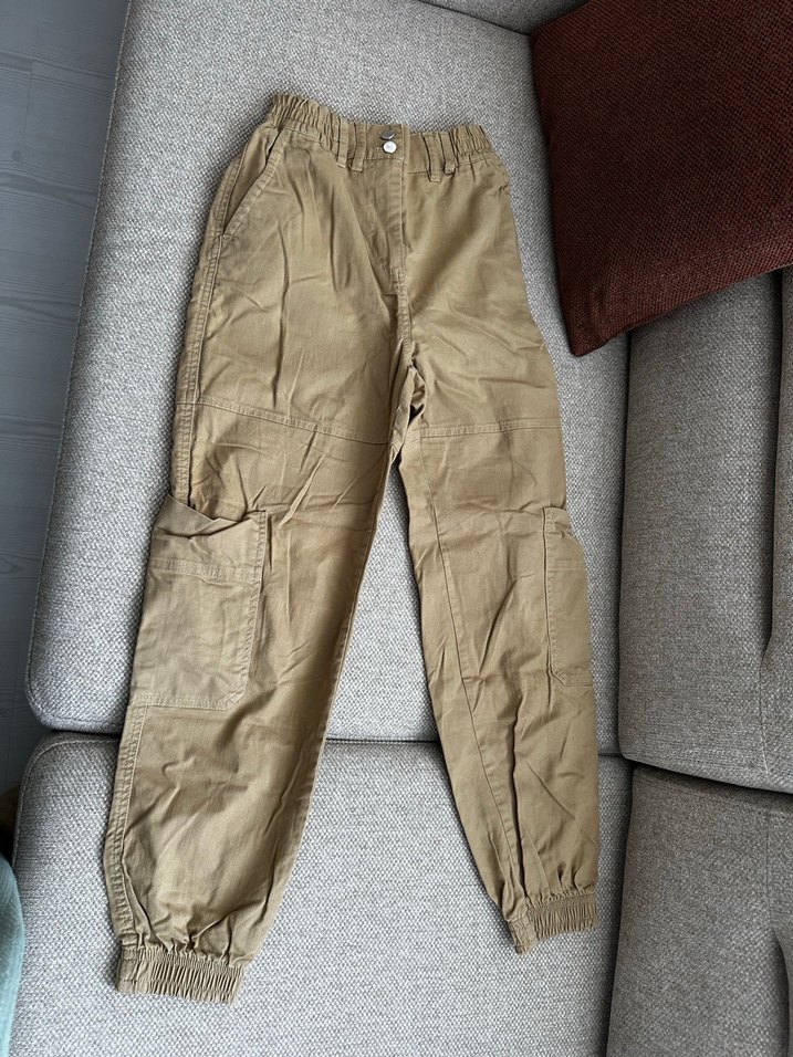 Oxxo Bej Kadın Kargo Pantolon. Bej, midi boy, salaş kesim ve lastikli paçalarla rahat sokak stili pantolon. Günlük kullanım için uygundur.