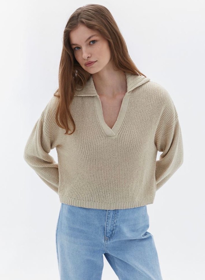 OXXO Bej V Yakalı Triko Kadın Kazak