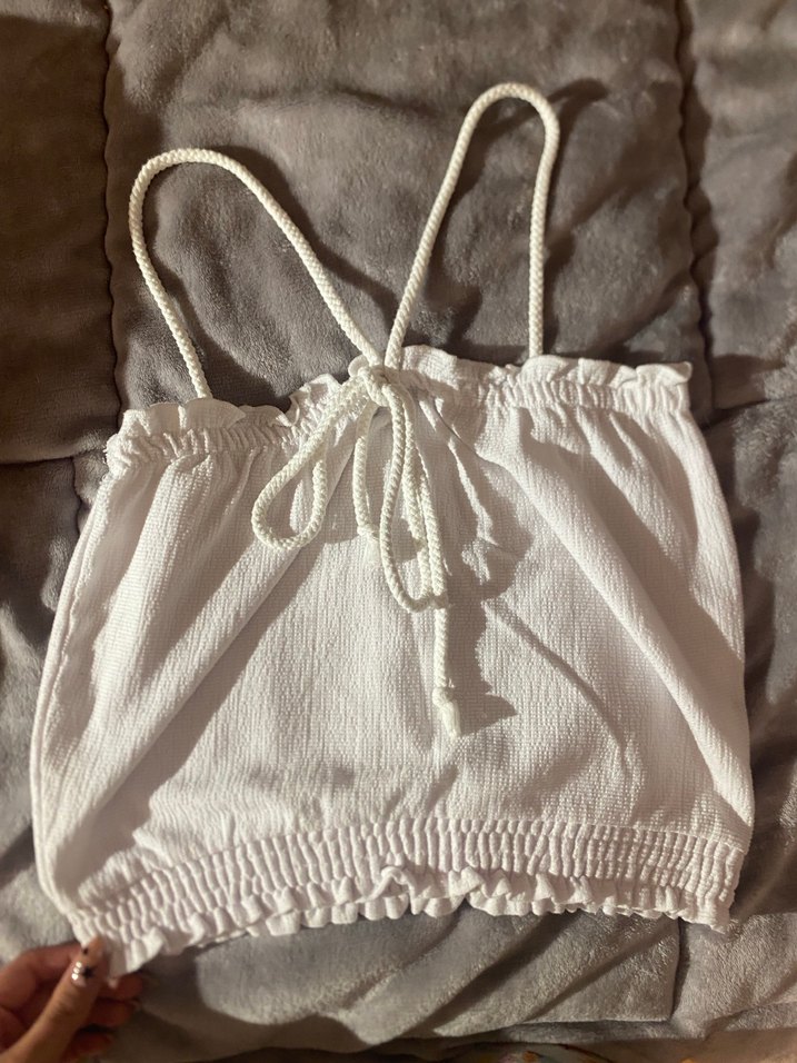 Oxxo marka beyaz crop top Üst kısmı büzgülü, bağcıklı tasarımıyla çok tatlı bir model Az kullanılmıştır, temiz ve bakımlıdır. Esnek ve rahat kumaşı vardır, yazlık kombinler için çok uygundur Dolabımda artık kullanmadığım için satıyorum Yeni sahibini mutlu etmesini çok isterim Özenle paketleyip gönderim yapacağım Sorularınız için yazabilirsiniz