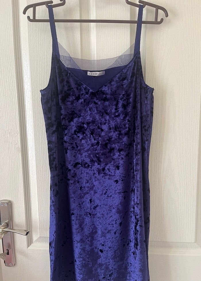 1 kez kullanılmıştır. Herhangi bir kusuru yoktur. Gece mavisi rengindeki elbisenin dokusu yumuşacıktır.Rengi seçeneklerde olmadığı için mor işaretlenmiştir.
