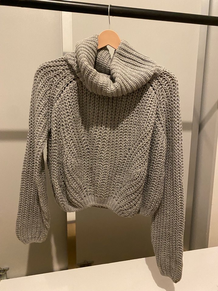 Gri örgü, boğazlı ve uzun kollu bu fitted kazak, günlük kullanım için rahat ve şık bir seçimdir. Kolları ve bel kısmı sık örgülüdür salaş durur. Sadece boğazlı giymediğim için satıyorum, kusuru yoktur.