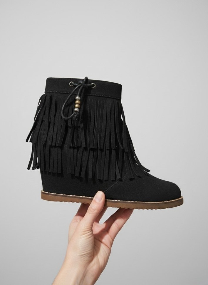 OXXO Nubuk Püsküllü Dolgu Topuklu Kadın Bootie