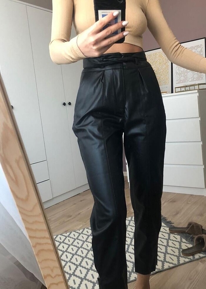 Etiketi yok ama hiç kullanmadım. 34-36 bedene olur. Derisi yumuşacık çok şık ve rahat bir pantolon
