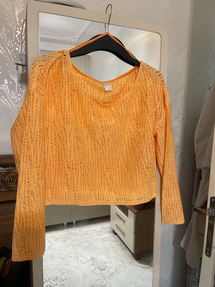 OXxo transparan bluz L beden etiketi silinmiş o yüzden yazısı görünmüyor uzun kollu geniş bir kalıbı var boy 41 santim  önünde bir yerde ip çekilmesi var ama hiç belli olmuyor fotoğrafta gösterdim