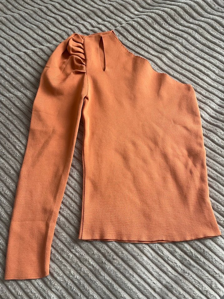 Bu kadın bluzu, uzun kollu ve yüksek yakalı olup, triko keten kumaştan üretilmiştir. Normal midi boyda, rahat ve sokak modasına uygun bej renktedir. Esnek kumaşlı hiç giyilmedi