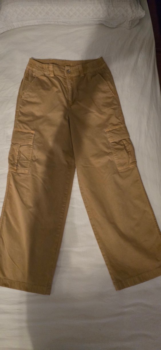 Oxxo XS Bej Kadın Rahat Kesim Keten kargo Pantolon