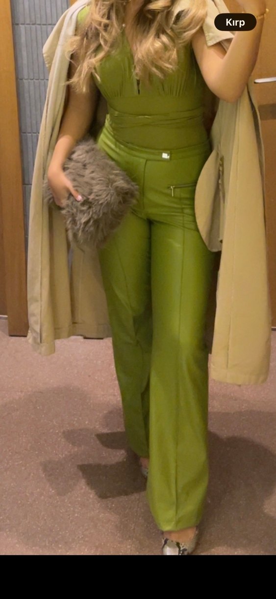 Oxxo Yeşil Deri Kadın Pantolon