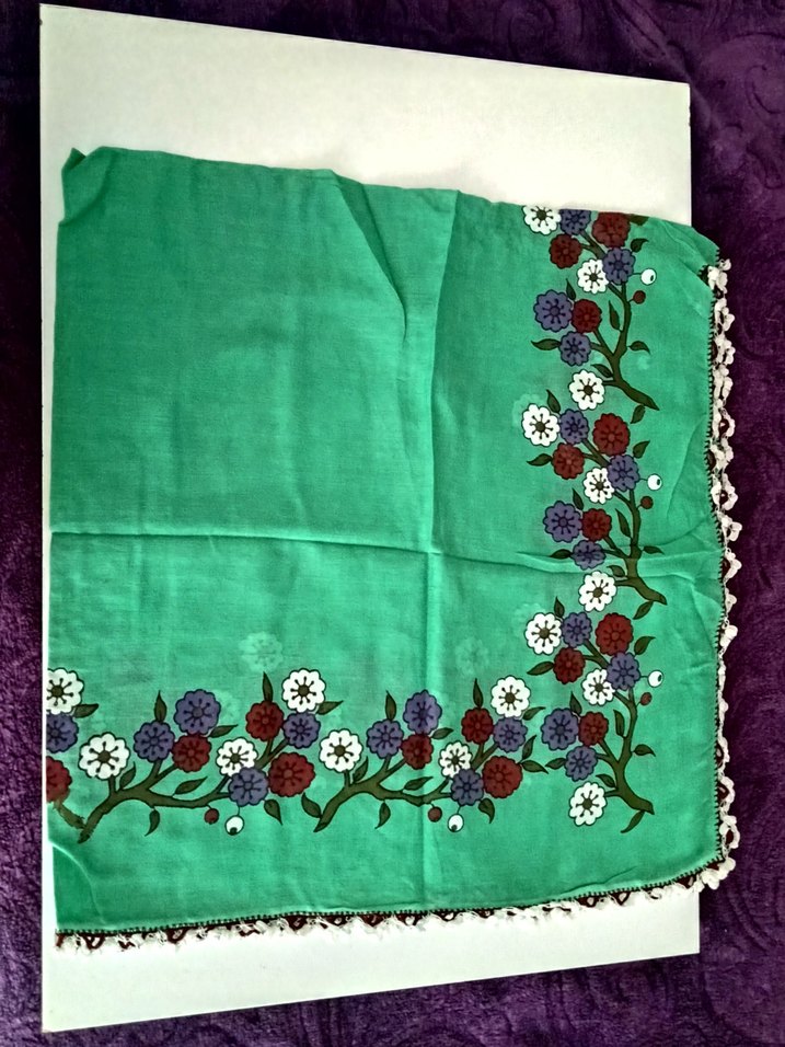 Çok renkli çiçek desenli, koyu yeşil . sandık ürünü hiç kullanılmamıştır