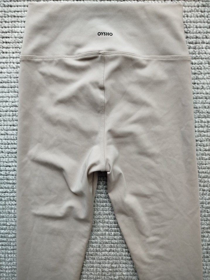 OYSHO marka, bej renkli, midi boy, düz ve sentetik kumaştan yapılmış, spor ve günlük kullanım için uygun, rahat kesim tayt. Şık ve sade tarz sunar. ♀️