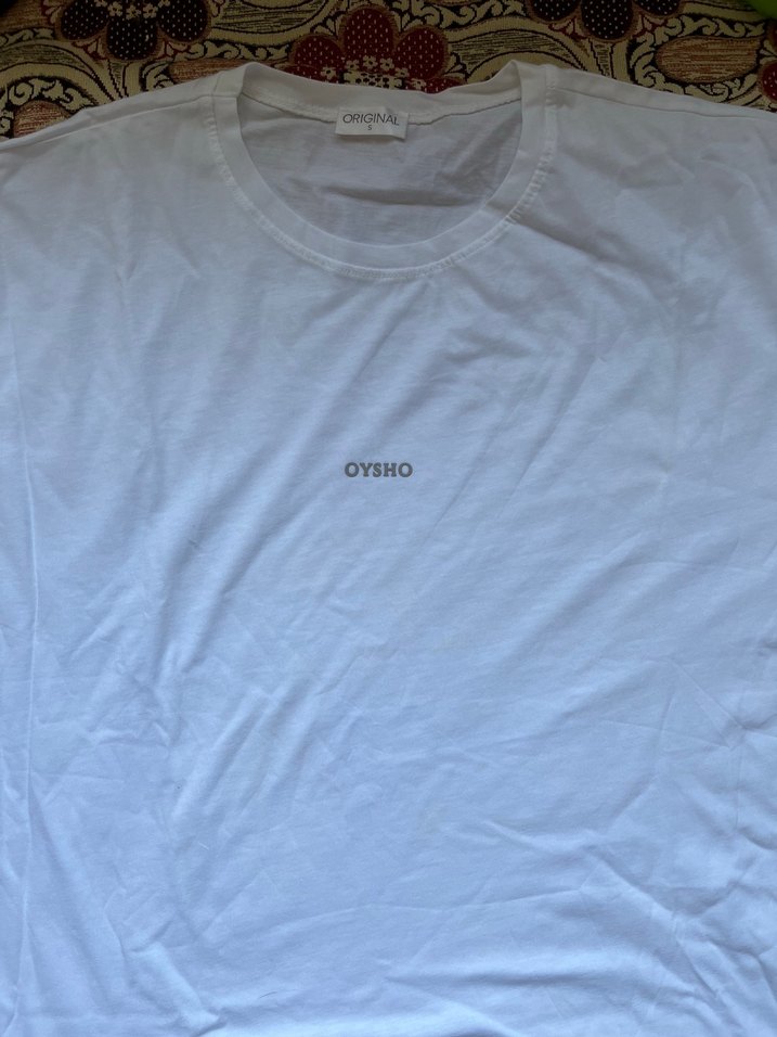 OYSHO beyaz keten tişört, yuvarlak yaka ve kısa kolludur. Bol kesimi ve minimalist tarzıyla günlük kullanıma uygundur. Küçük gri logo detaylıdır.