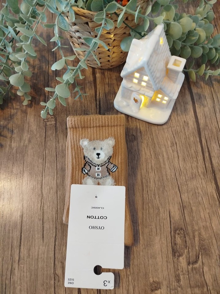 2 Li PAKET. Pamuklu kumaştan yapılmış, ayıcık desenli bej ve gri desenli çorap. Yumuşak dokulu, sade ve doğal görünümlü. #teddy #oysho #oyshocorap #teddybearcorap #teddycorap