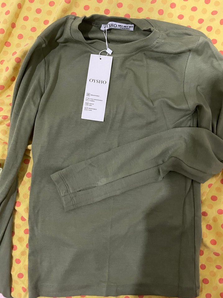 haki renkli, uzun kollu ve yuvarlak yakalı, rahat ve bol kesim el gecirme detayi var rengi yakismadigi icin giyinmedim