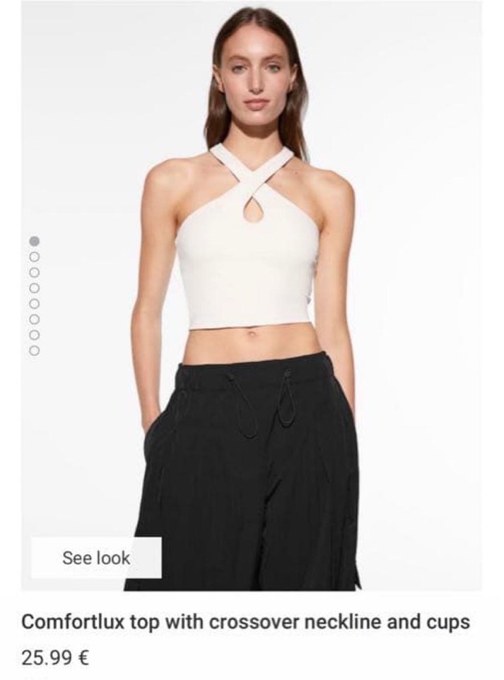 Hiç giyilmedi 1 defa yıkandı Pamuklu, beyaz, çapraz V yakalı ve askılı, mini kesim, rahat şıklık sunan kadın bluz.