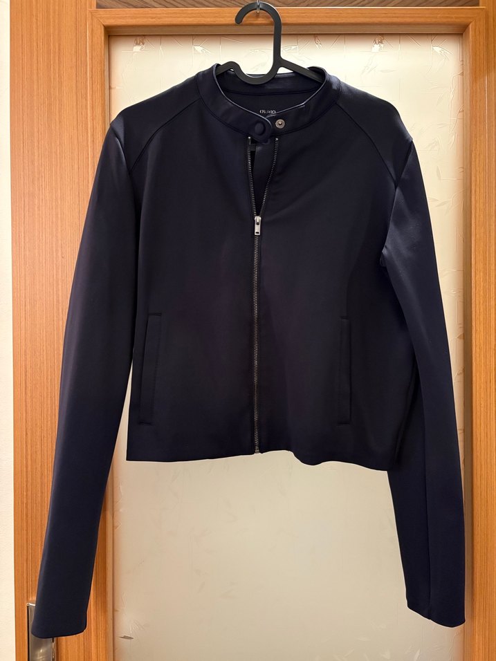 Fermuarlı, uzun kollu, yaka detayı olan, oturan kesim siyah kadın ceket.