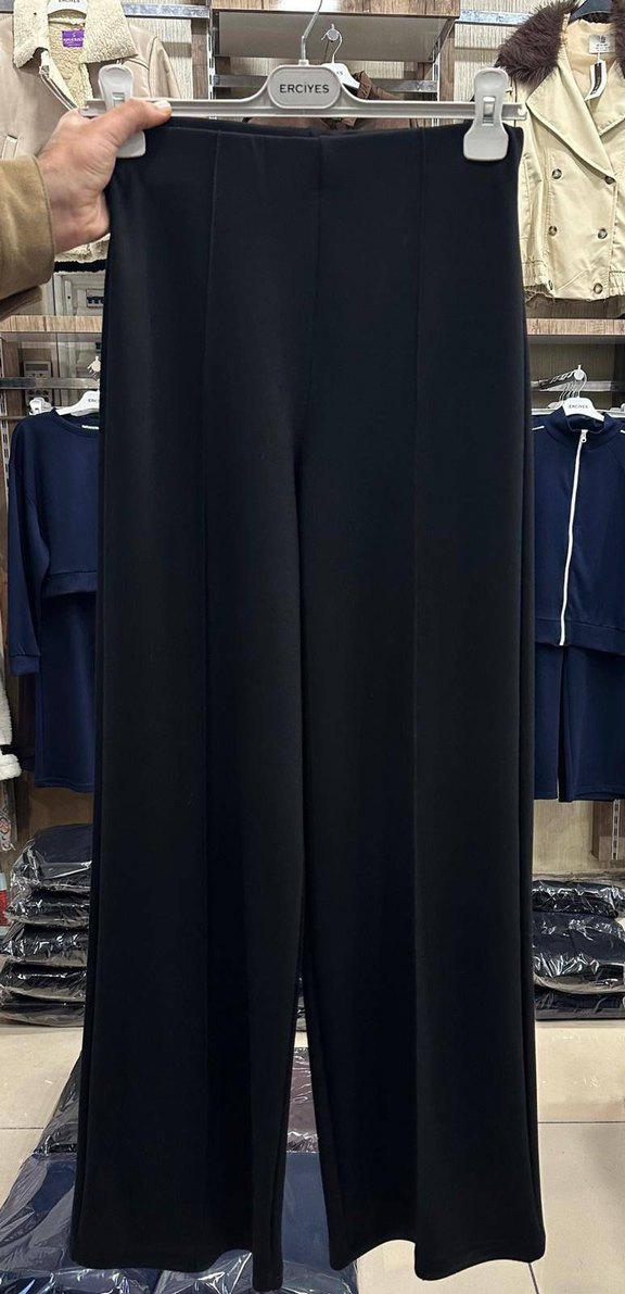 Kadınlar için siyah, uzun boy, regular fit kumaş pantolon, pilili detaylı, ofis kullanımı için uygun. Beden: S / XXL *İLANI SATIN ALMAYIN. YENİ İLAN AÇTIRIN